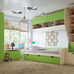 Модульная детская Киви (ЛДСП молочный дуб/лайм)