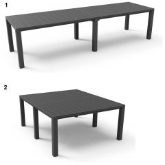 Раскладной стол Джули идеально подходит для особых случаев, поскольку может из небольшого столика на 6 персон превратится в большой прямоугольный или квадратный стол на 8-10 персон. Джули заполнит большие пространства, такие как сад или терраса, позволяя организовать семейную вечеринку или встречу в большом кругу друзей. Продукт отличается высокой прочностью и устойчивостью к воздействию погодных условий и УФ-излучения. Очень прост в сборке и поддержании чистоты.