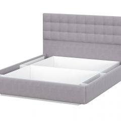 Кровать двойная №2 (универсальная 1.6х2.0) Серия 2 + основание (Белый/Серый ткань/Квадро Серый ткань)